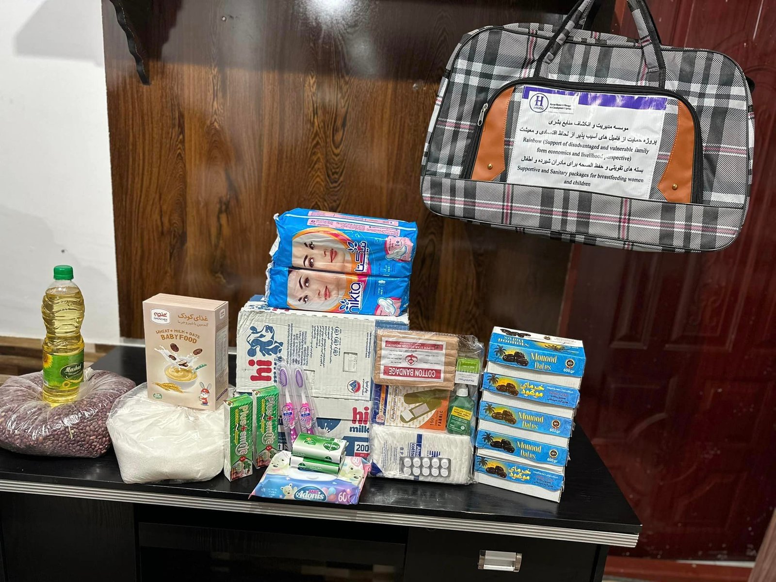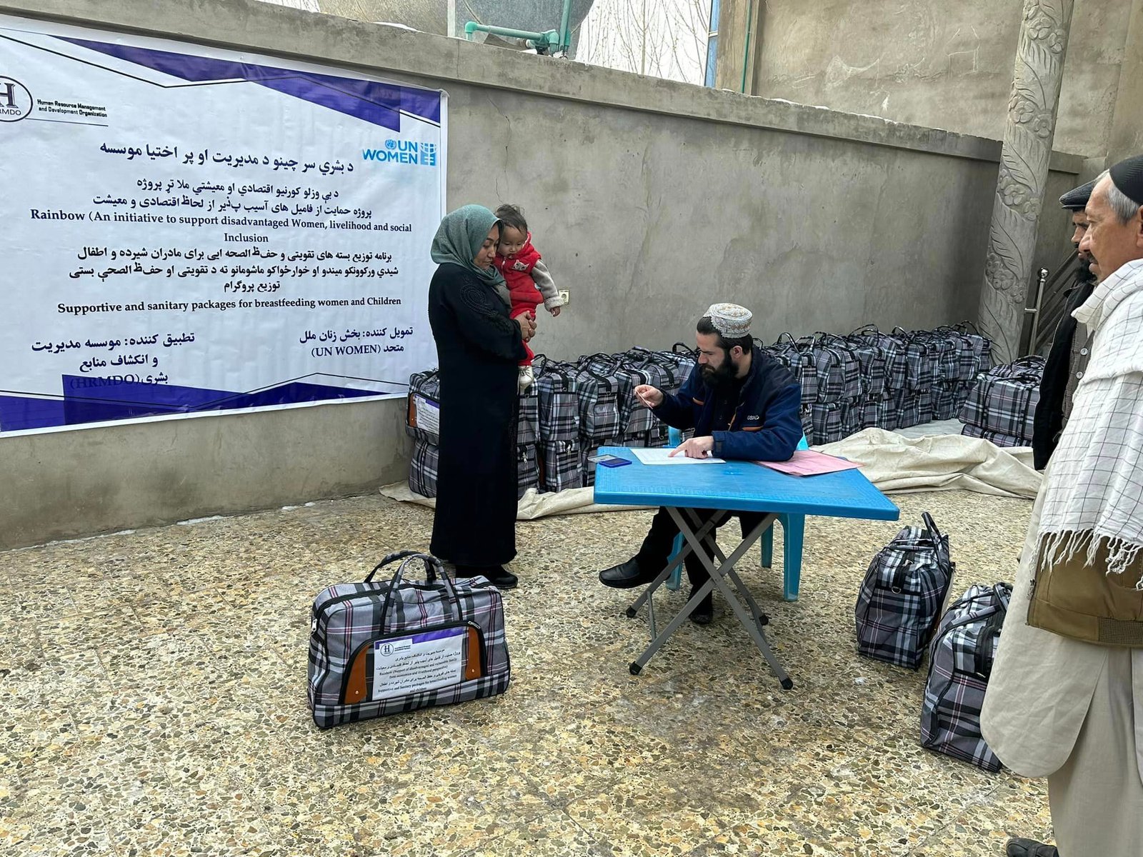 In order to support breastfeeding women and children, Human Resources Management and Development Organization (HRMDO) under rainbow (An initiative to support disadvantaged Women, economic, livelihood and social inclusion) project distributed 200 booster and sanitary packages for breastfeeding women and children which are include (two packages of milk, beans, sugar, oil, five cans of dates, Cyrillic for children and also sanitary materials). This project is implemented by the Human Resources Management and Development Organization (HRMDO) with the financial Support of the United Nations Women's Department in the 12th districts of Kabul.