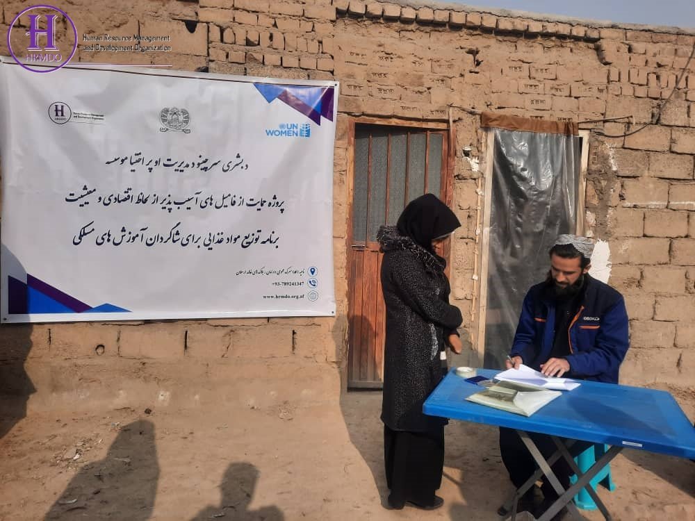 To support the family livelihood, Human Resources Management and Development organization (HRMDO) under the Rainbow project (an initiative to support disadvantage women economic, livelihood and social inclusion) distributed 60 food packages which are include (wheat flour, Rice, cooking oil, bean, pea, sugar, tea and salt) to vocational training student in district 12 and 13 of Kabul city. The project is financially supported by UN-Women, Women peace and Humanitarian Fund (WPHF) and implemented by Human Resources Management and Development organization (HRMDO) in district 12 and 13 of Kabul city.