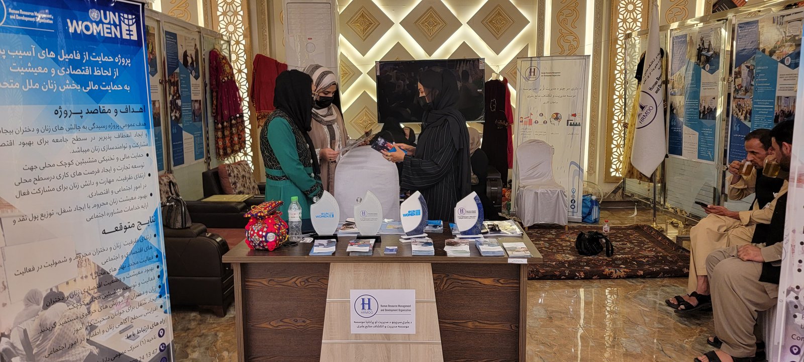 HRMDO is committed to support local enterprises and provide the market for their product and attract the support of donors, government and private sector. Hence; HRMDO facilitated the participation of 30 local enterprises from 2 district of Kabul city. The exhibition continues for 4 days and it was a best chance for local enterprises. Besides that, HRMDO hosted several international agencies such as UN-women, UNDP, UNOPs and private sector authorities and shared their services and activities with them. They promised that will continue their support with Afghan women.